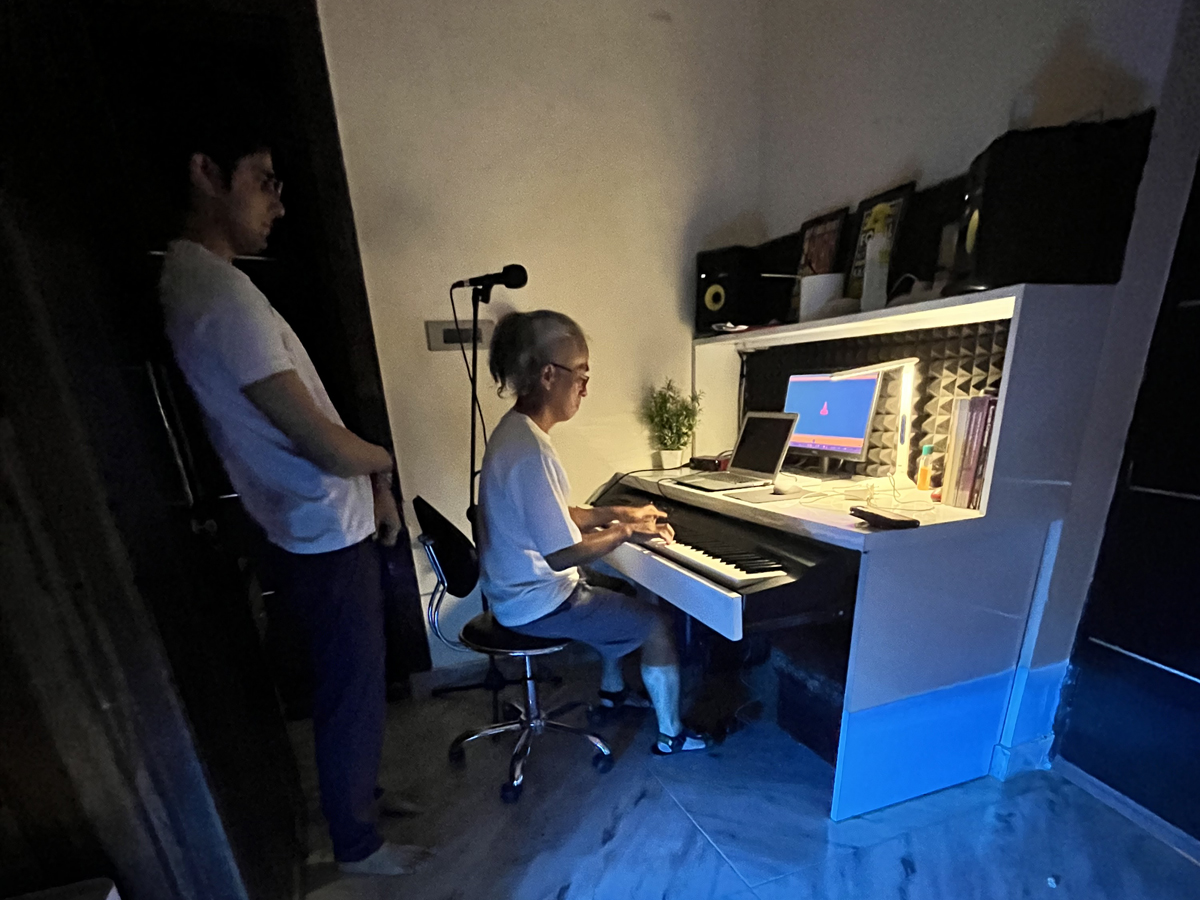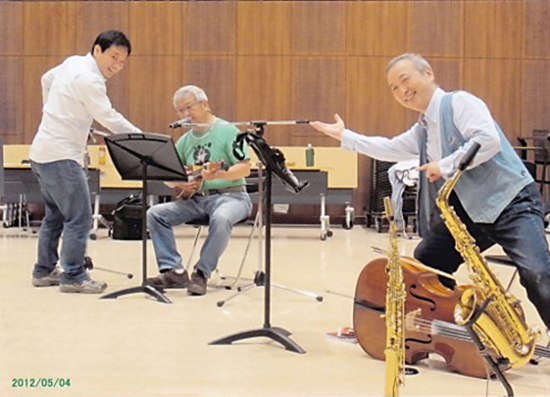 浜松のヤマハ工場で技術開発者としてまた、プロのフルート奏者としてまたスタジオプレイヤーとしてイギリスへ留学帰国後音響の開発やTV映画界の作曲編曲者として活躍した波多野氏と私と私の長男のE ベースは自由が丘のNOAEスタジオでセッション・・