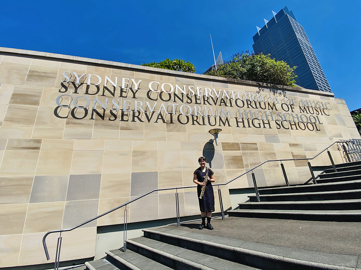 新しいメンバーが二人増えて、とうとうシドニーオペラハウスの講演が決まりました。サックスは女の子は1人しかいないので、先生が1番前に立たせてくれました。年齢もバラバラな子供達ですが、とにかくこのメンバーが集まると素晴らしい音色が広がります。