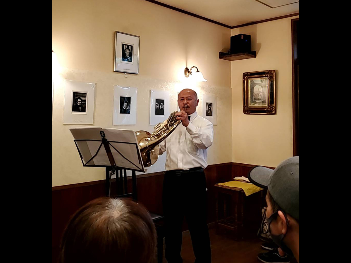 喫茶店でのホルン単独演奏