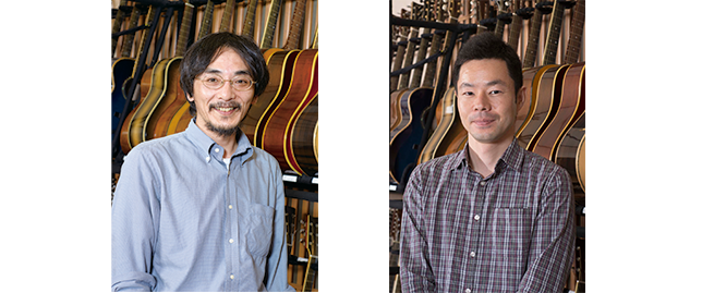 (写真左)ヤマハギターの歴史について豊富な知識を持つ開発担当の樋口典秀(つねひで)さん。(写真右)FG/FSシリーズの開発を担当する山本真也さん。