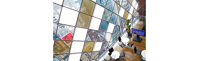 (写真は僕が通っている教室のフリースペース。吹き抜けで開放感があり、ガラス越しに銀座の街が一望できる)