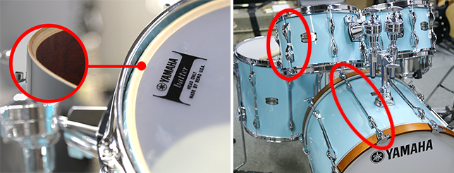 レコーディング・カスタムではこれまでも、リム(枠)とヘッドを固定し、ヘッドのテンション(張り具合)を調節するパーツであるラグにハイテンションラグ(打面両側が一体となっているタイプ)を採用してきたが、新生モデルではそのデザインを一新。ラグの重量を増すことで、不要な倍音をカットし、より切れ味とまとまりのあるサウンドを実現した。