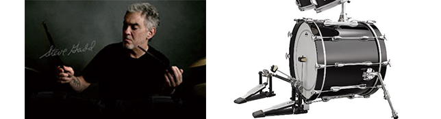 (写真左)スティーブ・ガッド氏(写真右)バスドラムをリフトアップすることにより、フットペダルのビーターを打面中心に当てることができる