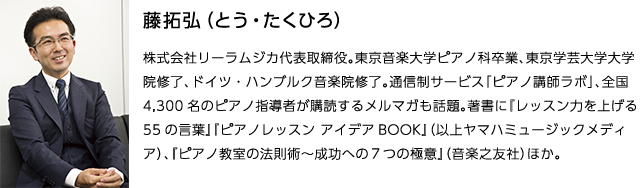 とても使いやすいと評判の『レッスン手帳』の2017年版が発売された。今やピアノ指導者必携ともなったこの手帳は、2014年の発売以来、徹底した利用者目線による改良が重ねられ、進化し続けてきた。監修は株式会社リーラムジカの代表であり、全国の先生たちに価値ある情報を発信する藤(とう)拓弘。「現場の声を形に」をコンセプトに、自身が運営する「ピアノ講師ラボ」の会員の協力を得て、アンケートに寄せられた声を丁寧に検証し、反映していった。