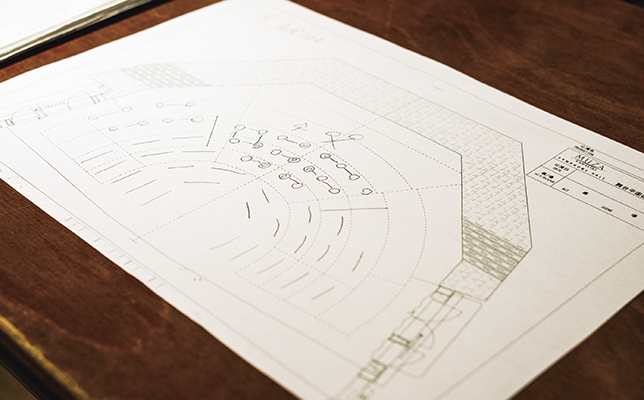 コンサートホールの舞台図面を元に、楽器の配置や作業手順などのプランを練る。それぞれの奏者が演奏しやすい椅子と譜面台の間隔があるので、それらも考慮する。
