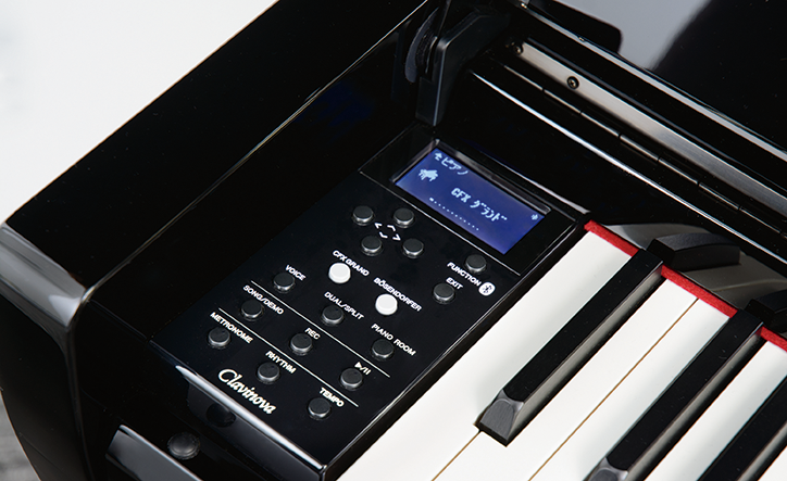 デザインに目を向けると、スタイリッシュな中にも脚柱に曲線を取り入れ、ピアノらしい優雅さを演出しているのが特徴。また、目立たない位置にヘッドホン掛けが付いているほか、今回のモデルチェンジで、全ての機種に譜面止めを装備。ヤマハ「CFX」とベーゼンドルファー「インペリアル」それぞれの音源にワンタッチでアクセスできる専用のボタンを新たに設けるなど、ピアノならではの美しさと機能性を兼ね備えています。