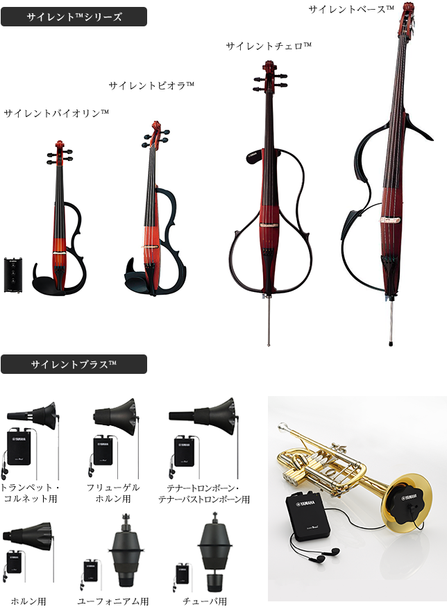 Q.消音機能のある弦楽器や金管楽器があると聞いたのですが、どういったものですか?