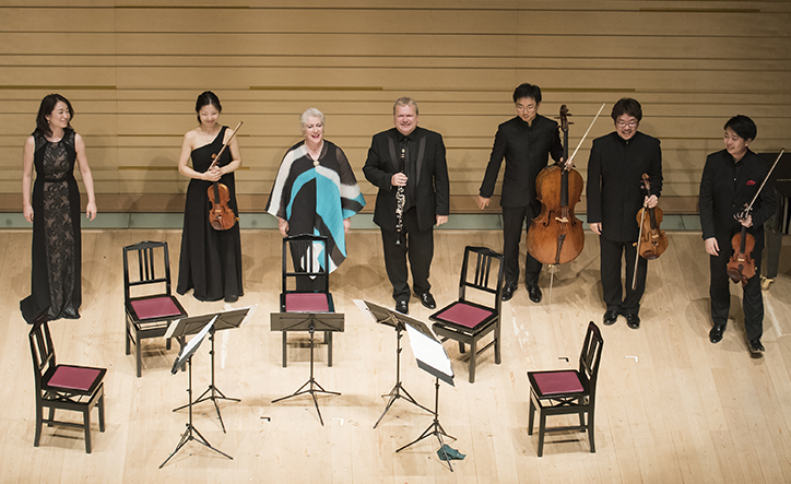 独奏者、室内楽奏者、そして近年では指揮者と、現代屈指の音楽家として活躍するマイケル・コリンズ。その名手の導きによって、この日のコンサートは、クラリネットの奥深く起伏に富んだ世界をめぐる旅となった。そして室内楽奏者たちのほかにゲストがひとり。コリンズと親交のあるソプラノ歌手、シャーロット・ド・ロスチャイルドの出演は、コンサートをさらに意義深いものにしてくれた。というのも、歌にかかわる作品がプログラムの半分を占めたこのコンサートでは、“歌”がひそかな鍵となったからである。