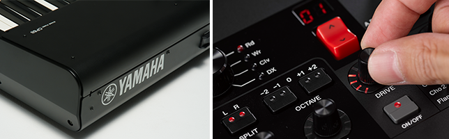 (写真左)ボディ全体に金属のアルミを使用したモデルは、ヤマハの鍵盤楽器史上初めてのことだそう。(写真右)思わず触りたくなるデザイン