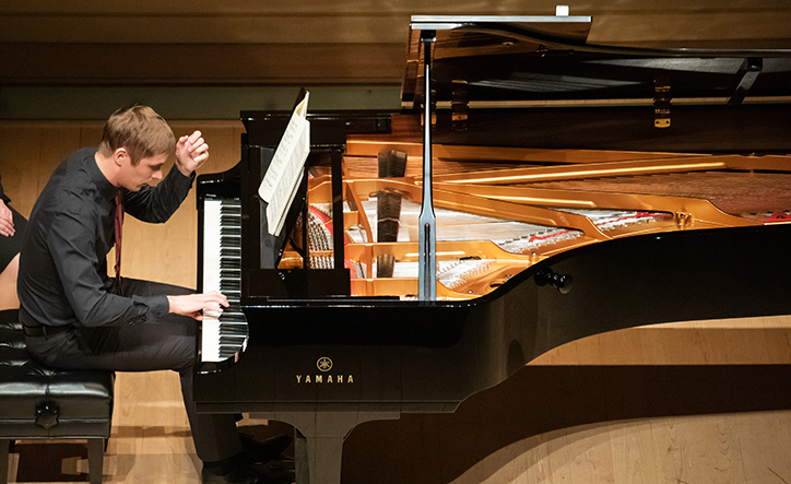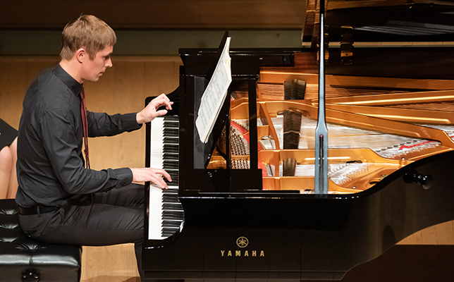 続いてブラームス。「シューマンの主題による変奏曲」は、恩師シューマンの自殺を受け、彼への感謝と、その妻クララへの敬意を込めて作られたものだ。鍵盤を撫でるような丁寧な指の運びは、まるで悲しみに寄り添うかのようである。中でも、シューマンが残した「クララ・ヴィークの主題による即興曲」からの引用が対位法的に展開する第10変奏は、一つ一つの動きを大切に、繊細に紡ぎ上げ、聴く者の心を強く捉えた。先のベートーヴェンとは異なり、主題に対して自由に書かれた変奏が続くこの作品。彼は自在に音色を操り、実にさまざまな表情で楽しませてくれた。