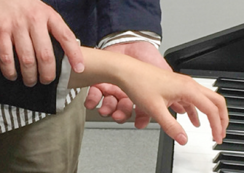 成人の腕の重量は平均約4~5kgで、ピアノの鍵盤は約50gの重さで沈むと言われています。つまり、重力に任せて腕を下ろすだけで充分音を鳴らせるということ。力は手の形を作るのに必要で、あとは指先をコントロールするだけ。ぜひ、力が抜けた感覚を知ってください。
