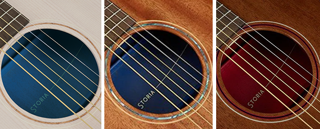 サウンドホールから見えるインナーカラー (左からSTORIA Ⅰ、STORIA Ⅱ、STORIA Ⅲ)。