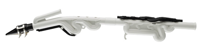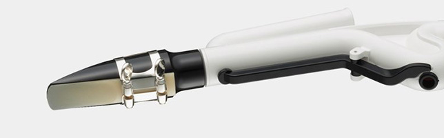 付属のマウスピースと樹脂製リードは、専用に設計されたもの。アルトサクソフォンを持っている人は、愛用のマウスピース・リード・リガチャーを装着して演奏することもできます。
