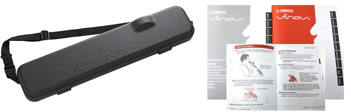 (写真左)専用ケースは、楽器にマウスピースとリードが装着された状態で収める仕様。(写真右)同梱のガイドブック『Alto Venovaを吹いてみよう!』には、かまえ方、音の出し方、音程や音色をコントロールするためのヒント、サンプル曲集が掲載されているので、購入したその日から楽しめます。