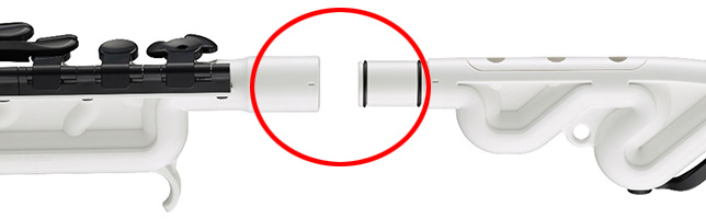 大きく長くなったボディの手入れをしやすいよう、管体は上下2つに分かれる分割式に。管体に目印が付けられているので、組み立てるときも迷いません。