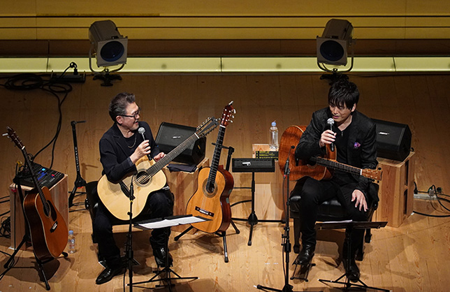 トップバッターは、2019年デビュー50周年を迎えたクラシック・ギターの名匠、荘村清志で、スペインの作曲家F.ソルの代表作「モーツァルト『魔笛』の主題による序奏と変奏曲」を披露。同じスペインの巨匠ナルシソ・イエペスに師事した荘村のギターは、穏やかさとほのかな哀愁が入り混じる響きが脳裏にかの地を浮かばせ、心地よい気分に浸らせてくれる。しかもその雄弁な音が、アンプを通さずに聴けるのである。荘村自身も演奏後に熱弁していたが、ヤマハホールがアコースティックギターを堪能するのに最適なホールであることを、荘村の妙なる演奏によって実感した。
