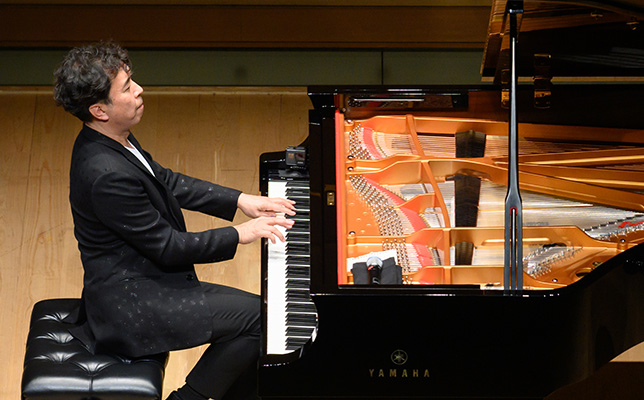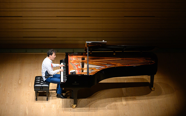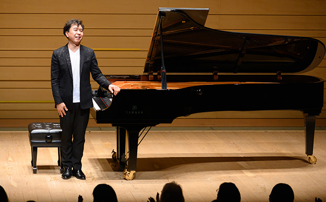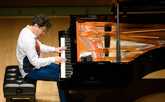 後半の中心は即興演奏。「ウェルカム・トゥ・マイ・コンポージング・ルーム(私の作曲部屋へようこそ)」だ。まずは1音ずつ、長調、短調、半音階の入り交じった「音列」を弾く。音列に基づく現代音楽のようなものを期待させる。そこから始まったのは全音音階風の音楽で、ドビュッシーやバルトーク、あるいはムソルグスキーの「禿山の一夜」などを想起させながら多様に展開する。ブルースや教会音楽、サティ風もあった。こうして即興は全体で2つの組曲を構成した。