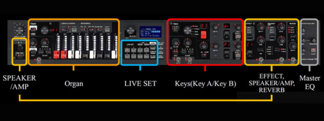 ライブ活動を行うキーボーディストの為にデザインされたステージキーボード。物理ドローバーを備えたVCMオルガン、伝統的なアコースティックピアノとエレクトリックピアノ、そしてFM音源を搭載。