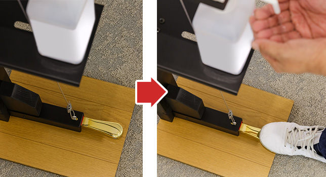 一回踏めば、適量のアルコールが噴射される。