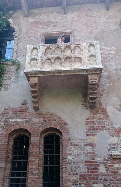 ヴェローナはシェイクスピアの「ロミオとジュリエット」の舞台となった場所。市内にはモデルとなった「ジュリエッタの家」(イタリア語読み)があり、ジュリエット像と有名なバルコニーが。