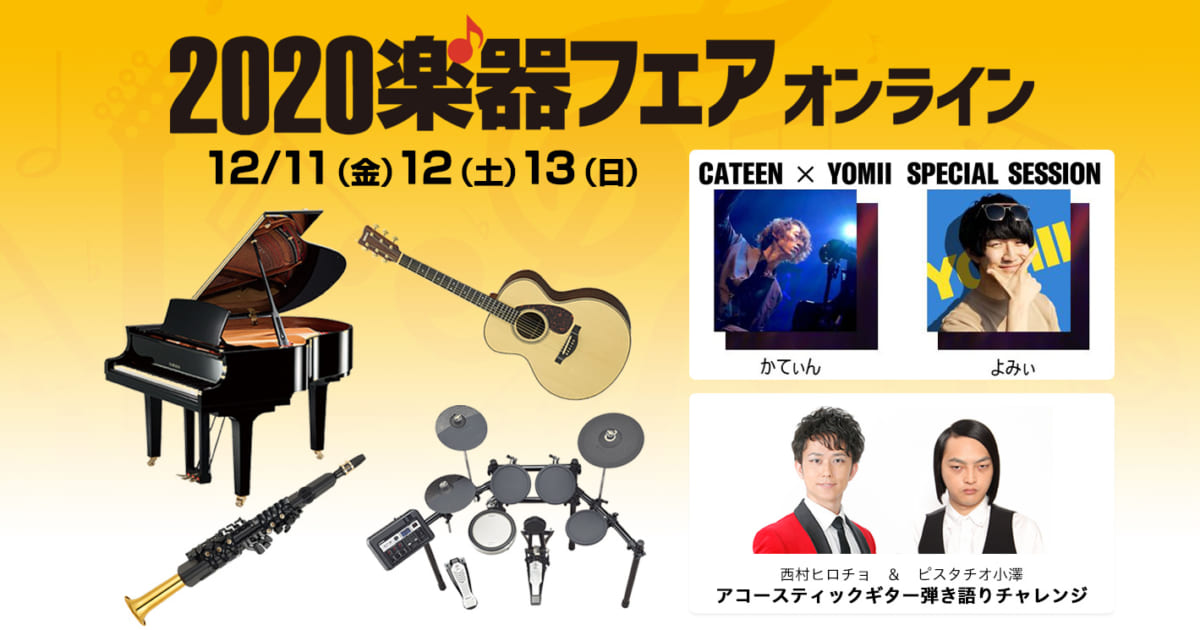 「2020楽器フェアオンライン」は2020年12月11日(金)~13日(日)の3日間で開催。「今こそ楽器をはじめよう!音楽は鳴りやまない」をキャッチコピーに掲げる。