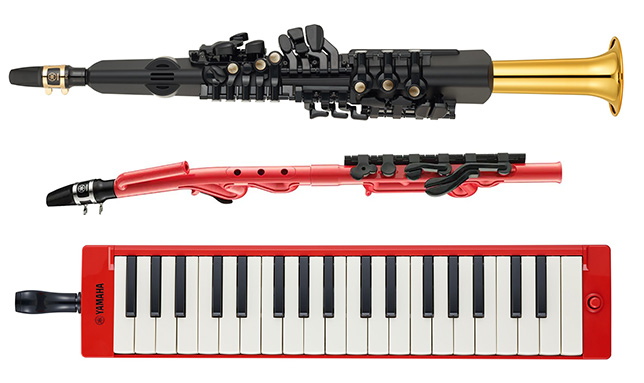 画像上から、デジタルサックス「YDS-150」、カジュアル管楽器 ヴェノーヴァ「YVS-120RD」、大人のピアニカ「P-37E」。