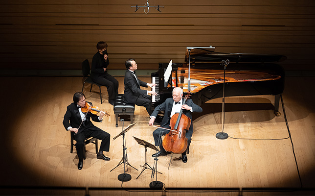 そんなホール・サウンドを思い出させてくれたのが、徳永二男(バイオリン)、堤剛(チェロ)、練木繁夫(ピアノ)のトリオだ。2020年12月3日、ベートーヴェンとチャイコフスキーのピアノ三重奏曲を聴きに、歳末の銀座へと向かった。