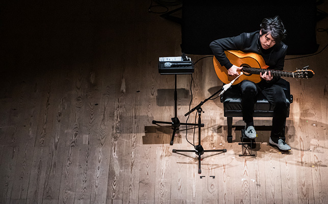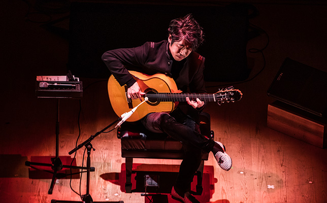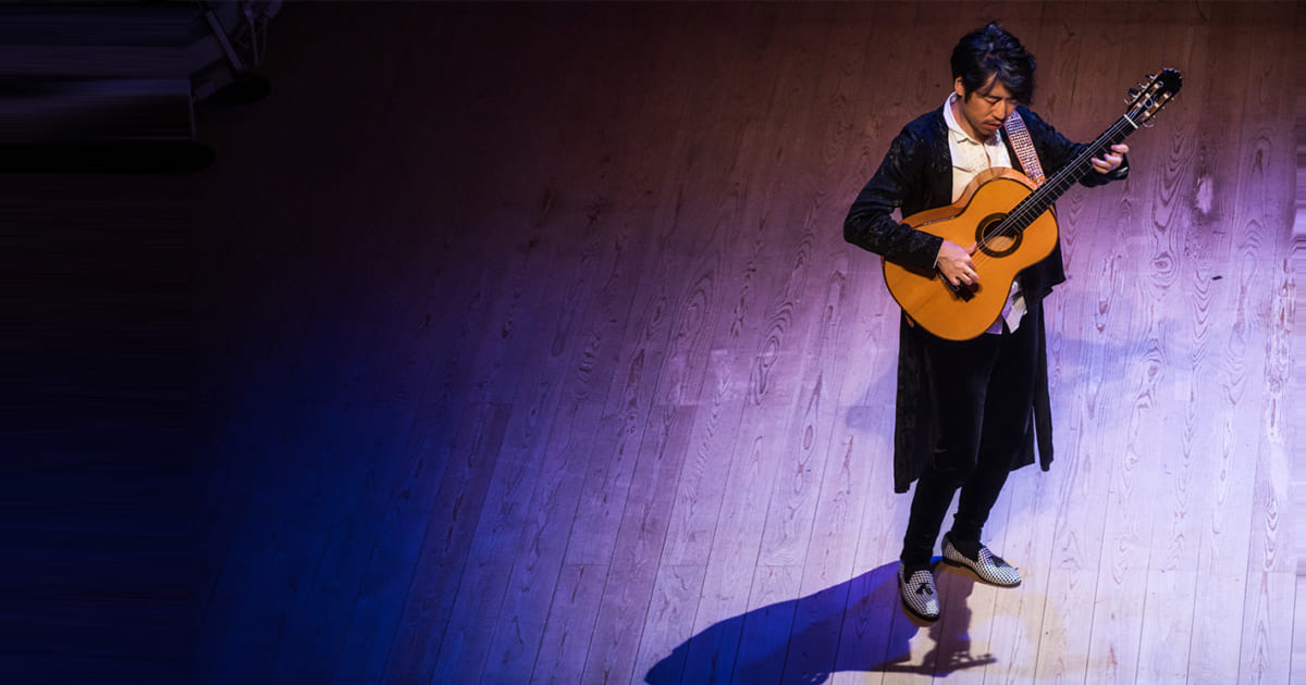 情念が詩となり、歌い踊るかのようだ。2020年12月4日、ヤマハホールでの「沖仁 フラメンコギター・コンサート」は、世界が認めるギタリストの多彩な表現力を印象づけた。12拍子の速いリズム、哀愁漂うフリギア旋法、いわゆる「ミの旋法」が特徴のフラメンコを基本様式にしつつ、自作から古典まで、シャープで彫りの深い響き、超絶技巧の展開がさえる。後半はクラシックギターの大萩康司とデュオで聴かせた。根から明るい演奏家たちだけにふさわしい、暗い情熱のスペイン音楽が、静かな夜をまぶしく揺らした。