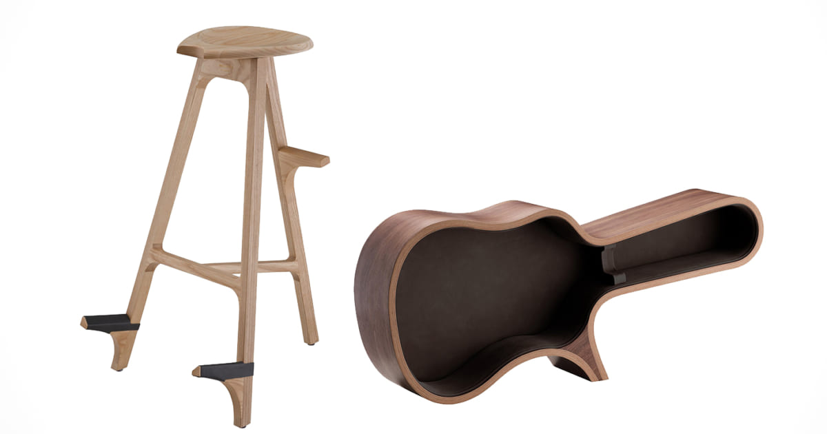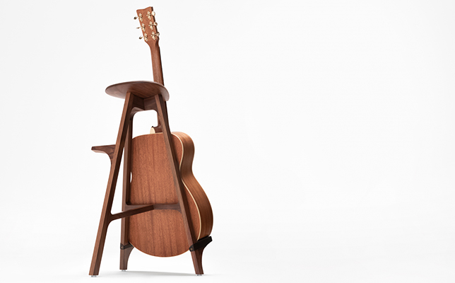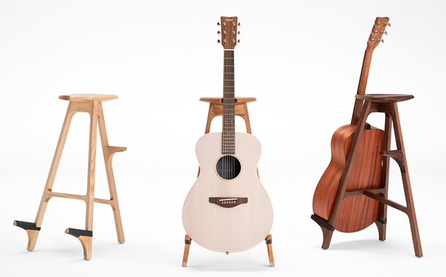 挑んだのはヤマハの楽器デザイナー。ギターの存在を際立たせながら家具としても美しいミニマルで革新的な造形で、プレーヤーの相棒であるギターの居場所をケースでなく生活空間に創り出した。