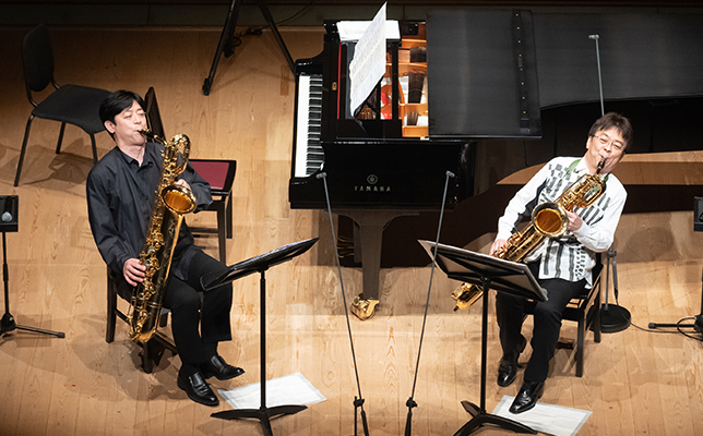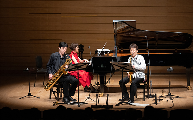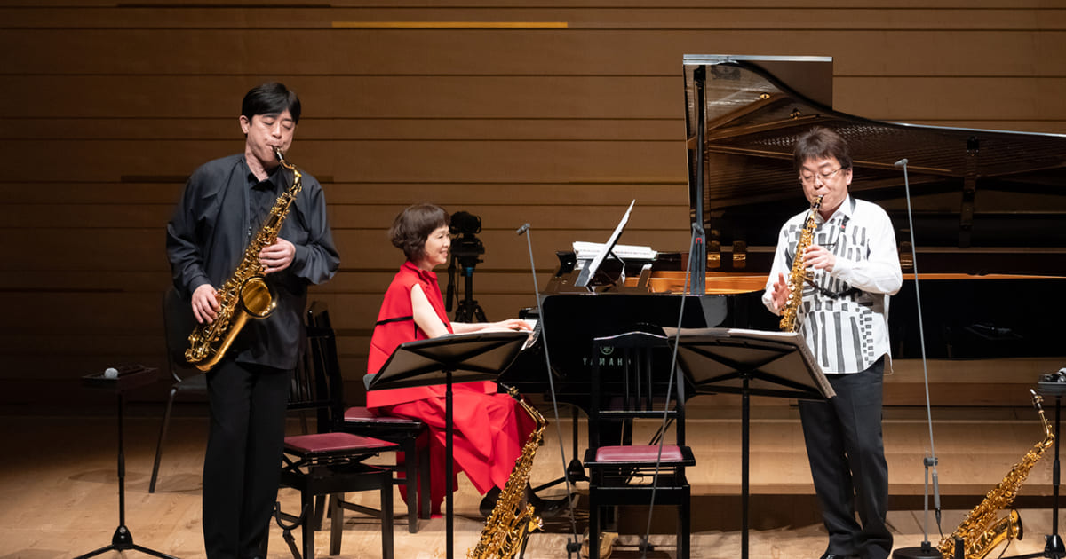 輝かしくも表情豊かな響きに心が弾む。2021年6月12日、ヤマハホールでの「須川展也&田中靖人 サクソフォンデュオ・コンサート~ピアニスト、小柳美奈子と共に~」は、世界初演の2曲を含め、ソロ、デュオ、ピアノとのトリオでサクソフォンの新たな可能性を開いた。