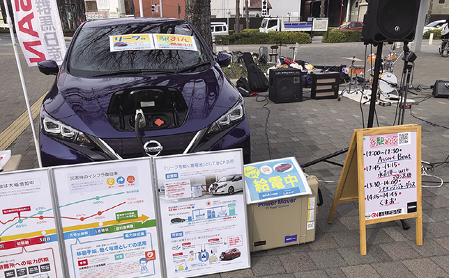 また、原田さんは群馬日産自動車に営業に行き、会場の電力供給源として電気自動車「リーフ」を展示提供してもらっている。