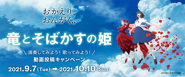 音楽を愛する人を応援するヤマハのプロジェクト「おかえり、おんがく。」では、ただいまコラボキャンペーンを開催中。「『竜とそばかすの姫』を演奏してみよう!歌ってみよう!動画投稿キャンペーン」と題し、演奏・歌唱動画を募集している。
