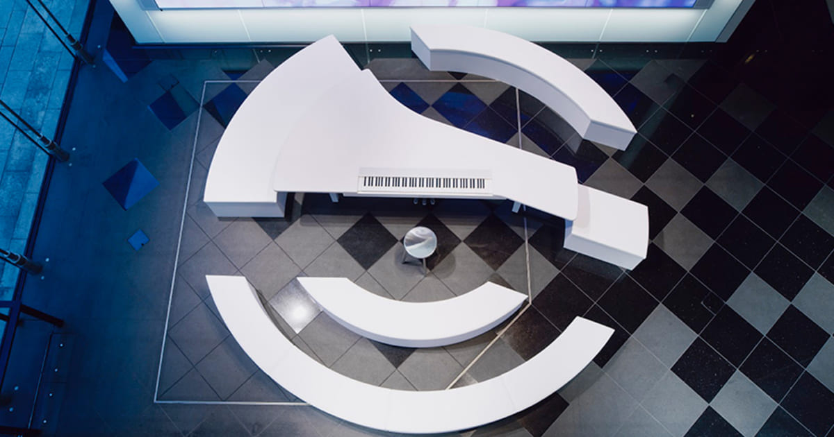 プレーヤーだけでなく、オーディエンスのためにデザインされたヤマハのピアノ「key between people(キー ビトウィーン ピープル)」。ヤマハ銀座店1階に設置され、誰でも自由に弾くことができるピアノだ。