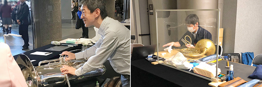 ほかにも、日本吹奏楽指導者クリニック(ジャパンバンドクリニック)など、吹奏楽の指導者を対象にしたイベントでも楽器のお手入れ方法などの講座を実施。また、ヤマハのウェブサイトでウイルス対策のための管教育楽器のお手入れ方法を動画付きで紹介するなど、日々のお手入れやメンテナンスの重要性を伝える活動にも積極的に取り組んでいます。