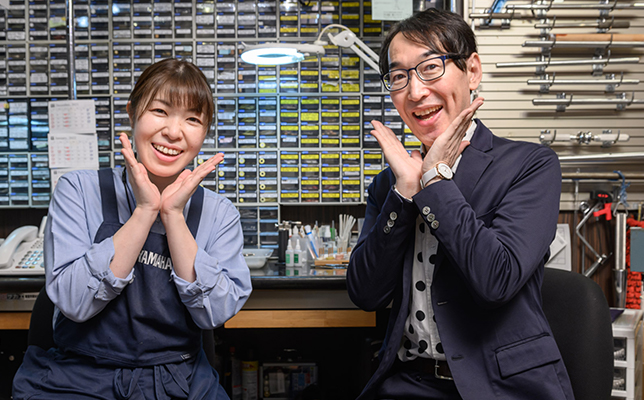 リペアスタッフの浦田久美子さんと。プロの技術に「ヤマハ管楽器安心アフターサポート」が加われば、こんな心強いことはありません!