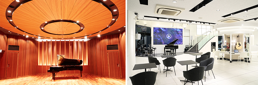 (写真左)ヤマハ銀座店コンサートサロン(写真右)ヤマハミュージック 名古屋店1階ブランド体験フロア