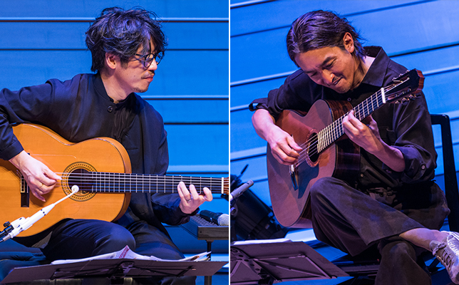 デュオは、スペインの作曲家ファリャのバレエ組曲『三角帽子』の『粉屋の踊り』や、ビゼーの人気オペラ『カルメン』の『セギディーリャ』など、オーケストラ用の曲をギターアレンジで。このコーナーで2人の楽器の違いが如実に表れる。