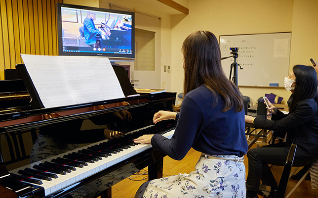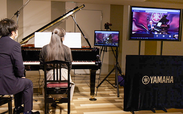 「これまでのオンラインレッスンではスピーカー越しでしか相手の音を聴くことができませんでしたが、このように生のピアノを使ってレッスンできるということは、学生にとって大きな喜びになったと思います」