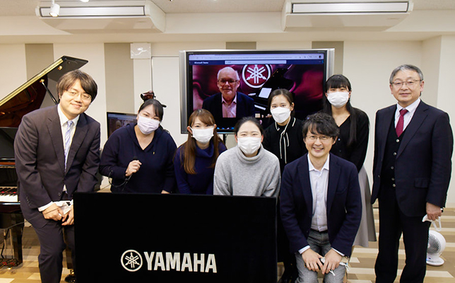 ウィーンと広島をつないだ新たな試みも。2021年12月に、ウィーンにあるヤマハ・ミュージック・ヨーロッパのオーストリア支店とヤマハミュージック広島店のディスクラビアをつないだリモートレッスンが行われた。