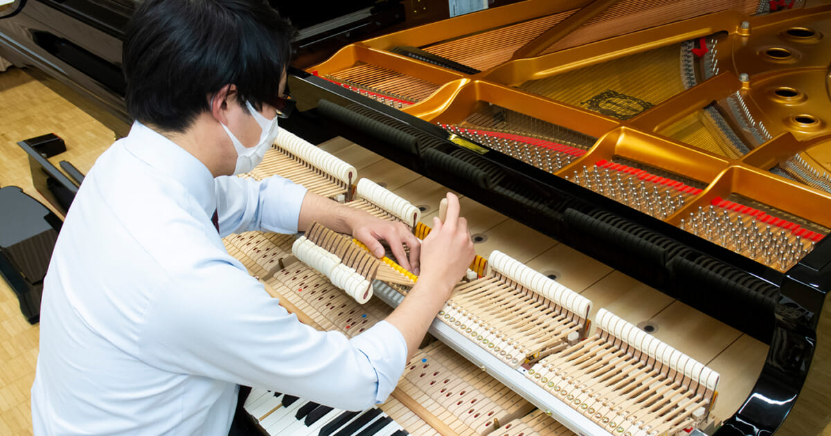 美しい音色を奏でるために必要な楽器の調整。複雑な構造をもつピアノは、ほかの多くの楽器とは違い、調律などのメンテナンスが演奏者自身ではできません。それだけにアフターサービスが果たす役割は重要といえるでしょう。