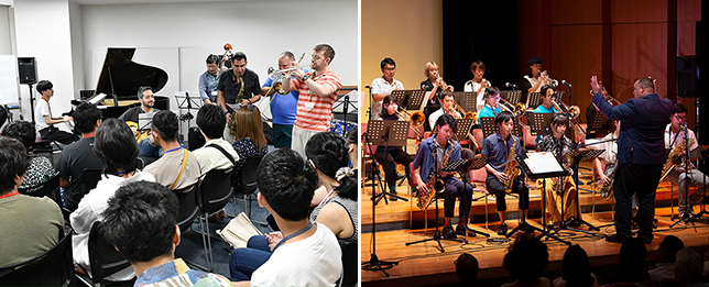 第一線で活躍する講師陣が直接レッスンをしてくれる。最終日にはレッスンの成果を披露するガラ・コンサートが行われる。(いずれもSeiko Summer Jazz Camp2019の様子)