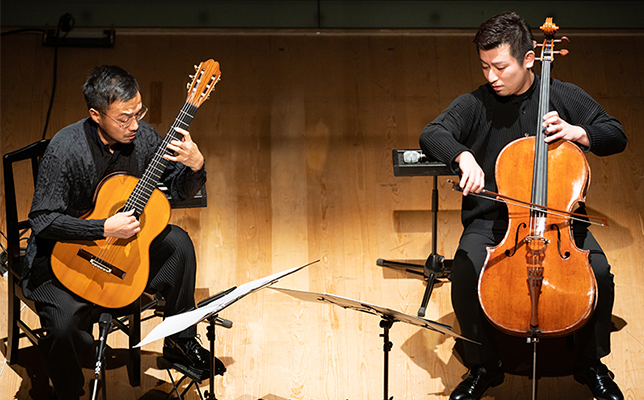 後半は再び大西洋を渡ってアルゼンチンへ。2022年7月に没後30年を迎えるピアソラの曲が続く。穏やかな中にも情念を込めた『タンティ・アンニ・プリマ』、情熱がほとばしる『ブエノスアイレスの四季』の「冬」「夏」など、静と動の表現がさえる。アンコールの一つはピアソラの『オブリビオン(忘却)』。「暗い曲を弾いてしまって」と宮田は謙遜して言ったが、暗くはない。美しくもはかない別れの時間は胸を打ち、忘れがたい。世界の音楽の多様性に耳を傾け、チェロとギターという彼らの独特な響きに旅先でまた巡り会いたい。