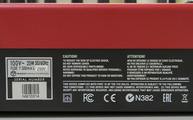 さらに、電子楽器やオーディオ製品では、電気用品安全法や電波法の順法が必須。輸入業者であるヤマハミュージックジャパンは定められた手続きを履行し、適切な技術基準への適合確認をしなければなりません。遵法性の確認ができたうえで、電気用品安全法に関わる「PSEマーク」や電波を使う機器に対して電波法に適合していることを証明する「技適マーク」を表示する必要があります。