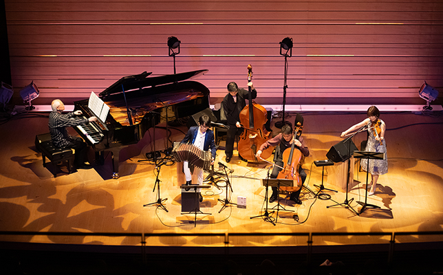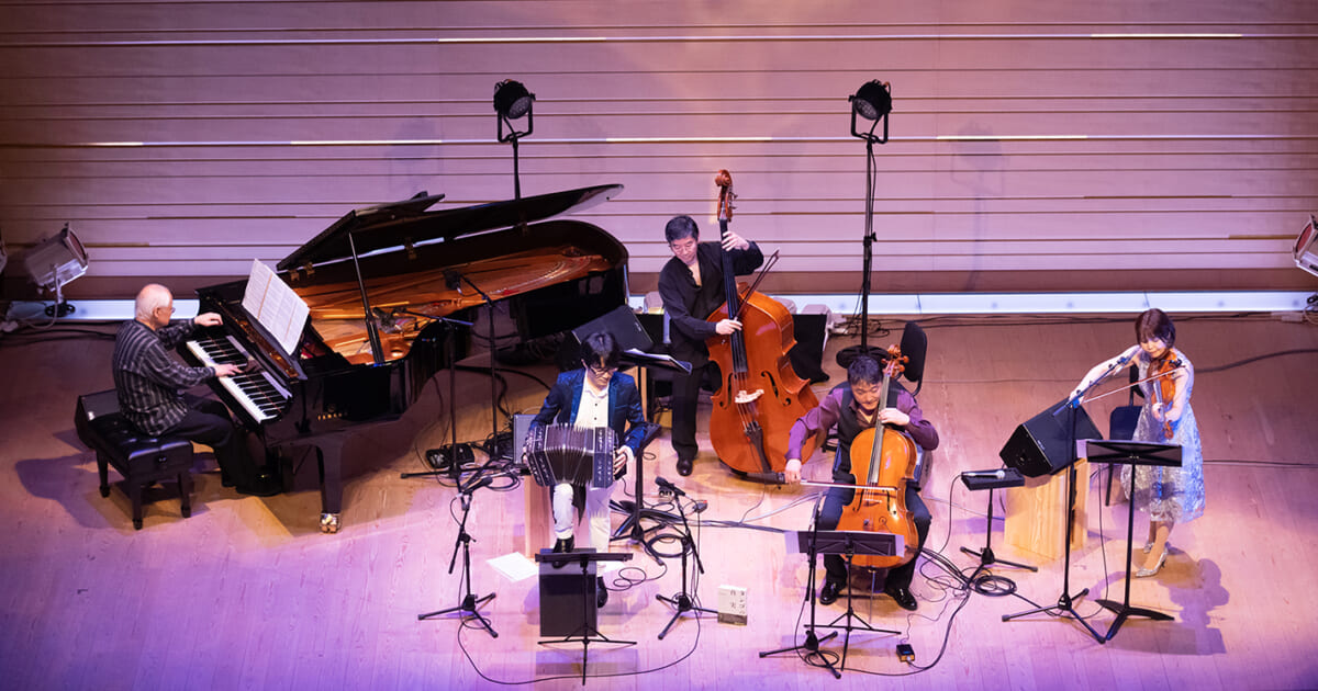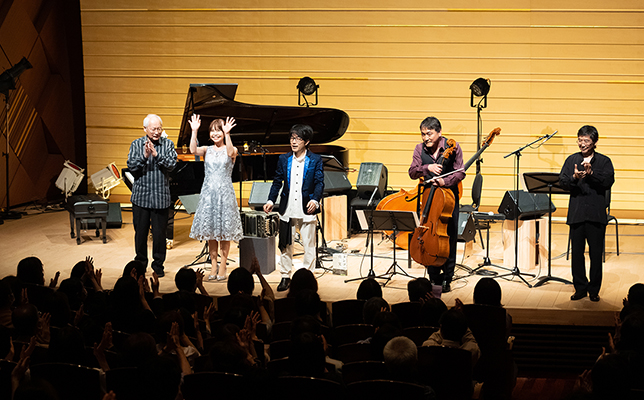 タンゴの革命児ピアソラは、2021年が生誕100周年で、2022年は没後30年の2年連続アニバーサリー・イヤー。様々な創意に溢れた記念公演が目白押しの中、やはり最大の注目は世界的バンドネオン奏者・小松亮太と言ってよいだろう。彼はピアソラの作品を長年取り上げ、2021年には大著『タンゴの真実』を上梓。タンゴの歴史や、それに前後する巨匠の素顔を余すところなく紹介し、ピアソラの功績や位置づけはより明確になった。今回の公演でも、小松はそんなピアソラへの敬愛を音で体現。東京都交響楽団の首席チェリスト・古川展生と初共演し、他にも近藤久美子(バイオリン)、田中伸司(コントラバス)、熊田洋(ピアノ)といった錚々たる名手が一堂に会した。