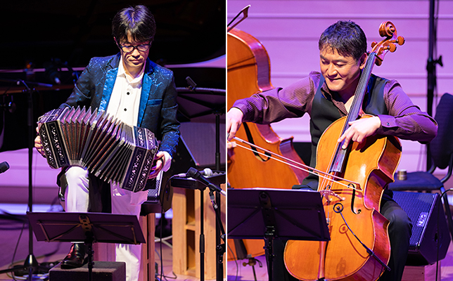 そして、小松と古川の初タッグで奏でられた『ブエノスアイレスの冬』『天使のミロンガ』『コラール』『リベルタンゴ』のピアソラ名曲集。小松のしなやかに振幅するバンドネオンと、古川の艶やかで渋味も程よく備えたチェロのマリアージュは、おなじみの作品たちに新たな音色のパレットと疾走感をまとわせることに大成功していたと思う。