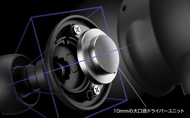 また、ユニットからノズルまでを一直線に配し、不要な振動や反響の干渉が起きにくい内部構造に。筐体内に設置しているマイクも、音の通り道を妨げないようドライバーに対して垂直に配置されている。試聴してみると、低域から高域まで音がしっかりと描き分けられていて、パワフルな低域のシーンでも中高域はクリア。楽器が奏でるニュアンスや質感までも感じることができる。
