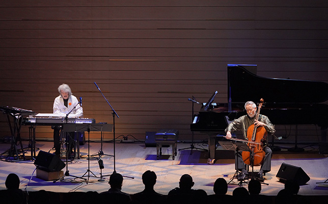 3曲目はチェロが古川に交代し、ウェザー・リポートの『Birdland』を披露。1970~80年代のジャズ界をリードしたジャズロック・バンドの代表曲をどう料理するのか、プログラムに曲名を見つけたときから気になっていたが、チェロのクラシカルな音色とシンセサイザーのデジタルな音色が対極的でありながらしっかり共存していて、実に刺激的だ。