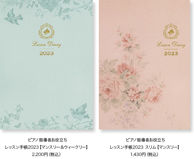 (左)『ピアノ指導者お役立ちレッスン手帳2023【マンスリー&ウィークリー】』