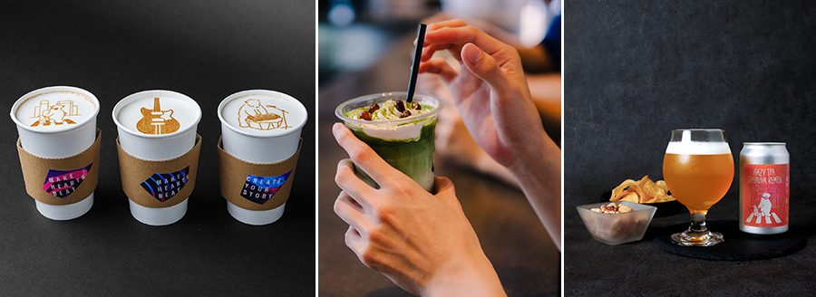 隣接する「CAFE」では、スペシャルティコーヒー専門店「Scrop COFFEE ROASTERS」が監修したオリジナルコーヒーや、創業100年を誇る静岡県掛川市の佐々木製茶の深蒸し茶を使用した抹茶ラテやほうじ茶ラテ、YSC渋谷限定のクラフトビールや葡萄ミルクティーINゼリーなどを提供する。