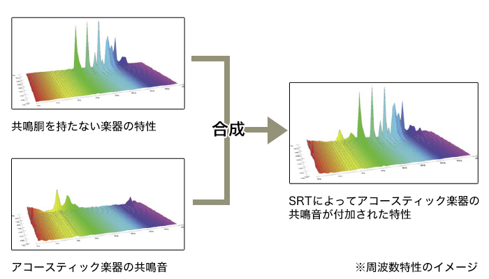 「アコースティックチェロが持つ胴の共鳴をシミュレートして、ピックアップが拾った音、つまり自分が演奏した音に対して、自然な響きとしてリアルタイムで付加していくのが『SRTパワードシステム』です。先代モデルでも、楽器の構造が生み出す音の作り込みは、かなり高い完成度で行われています。その土台の上に胴共鳴をシミュレートした音も加えることで、より豊かな表現ができるようになりました」(宮崎さん)